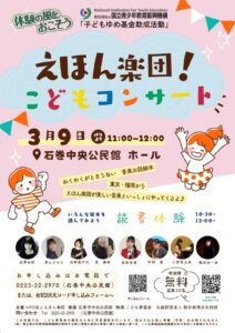 石巻中央公民館10:30読書体験11:00えほん楽団こどもコンサート