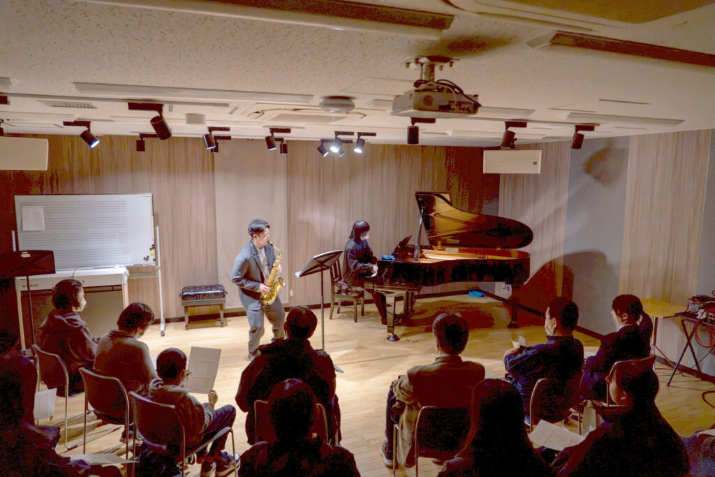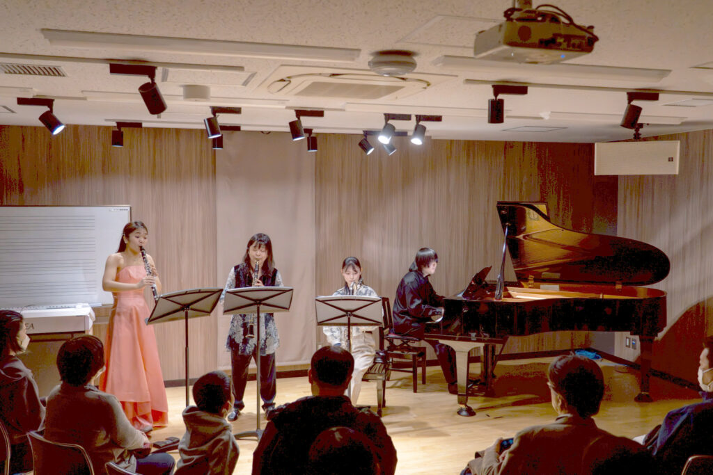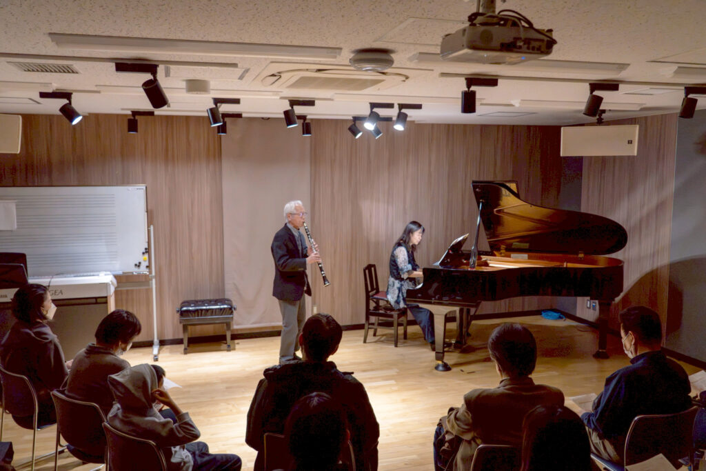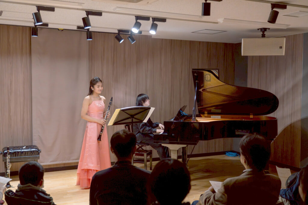 前半は、東京藝術大学時代のご学友であるクラリネット奏者・栗山かなえさんと、ピアニスト・鶴原壮一郎さんによるデュオリサイタル。お二人の息の合った演奏は非常に洗練されており、練り上げられたセットリストに引き込まれているうちに、1時間はあっという間に過ぎ去っていきました。