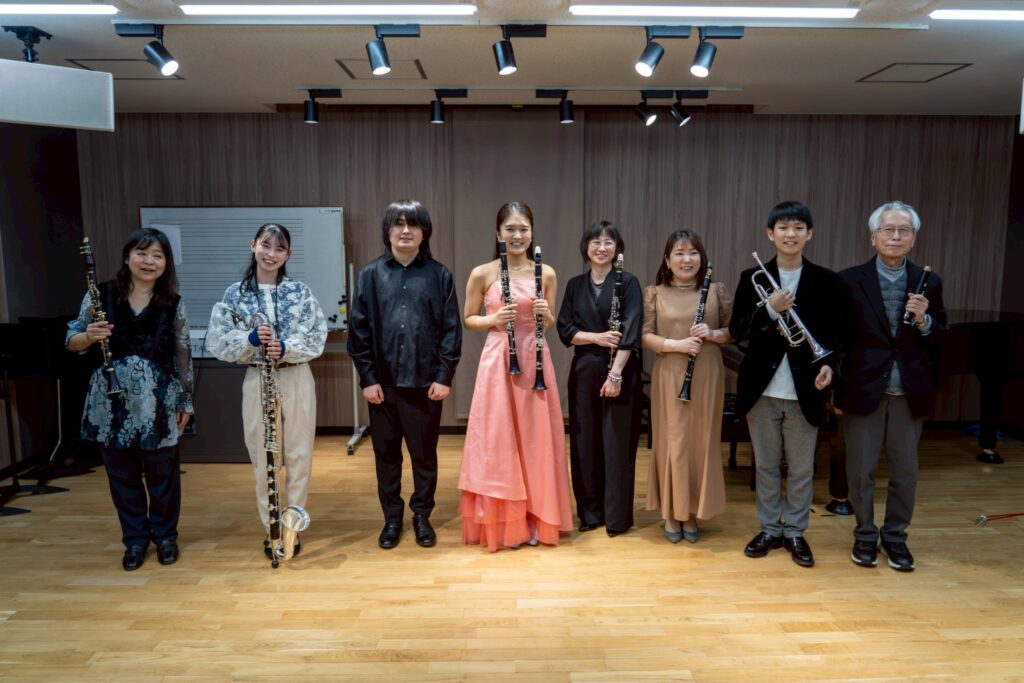 続く後半のステージでは、宮城県内はもちろん、九州各地からも演奏者が集結。クラリネットだけでなくサックスやトランペットも加わり、多彩な音色が響き渡りました。どの曲目からも、この宮城の地に想いを寄せる温かな情動が伝わり、会場全体が優しい一体感に包まれたひとときとなりました。