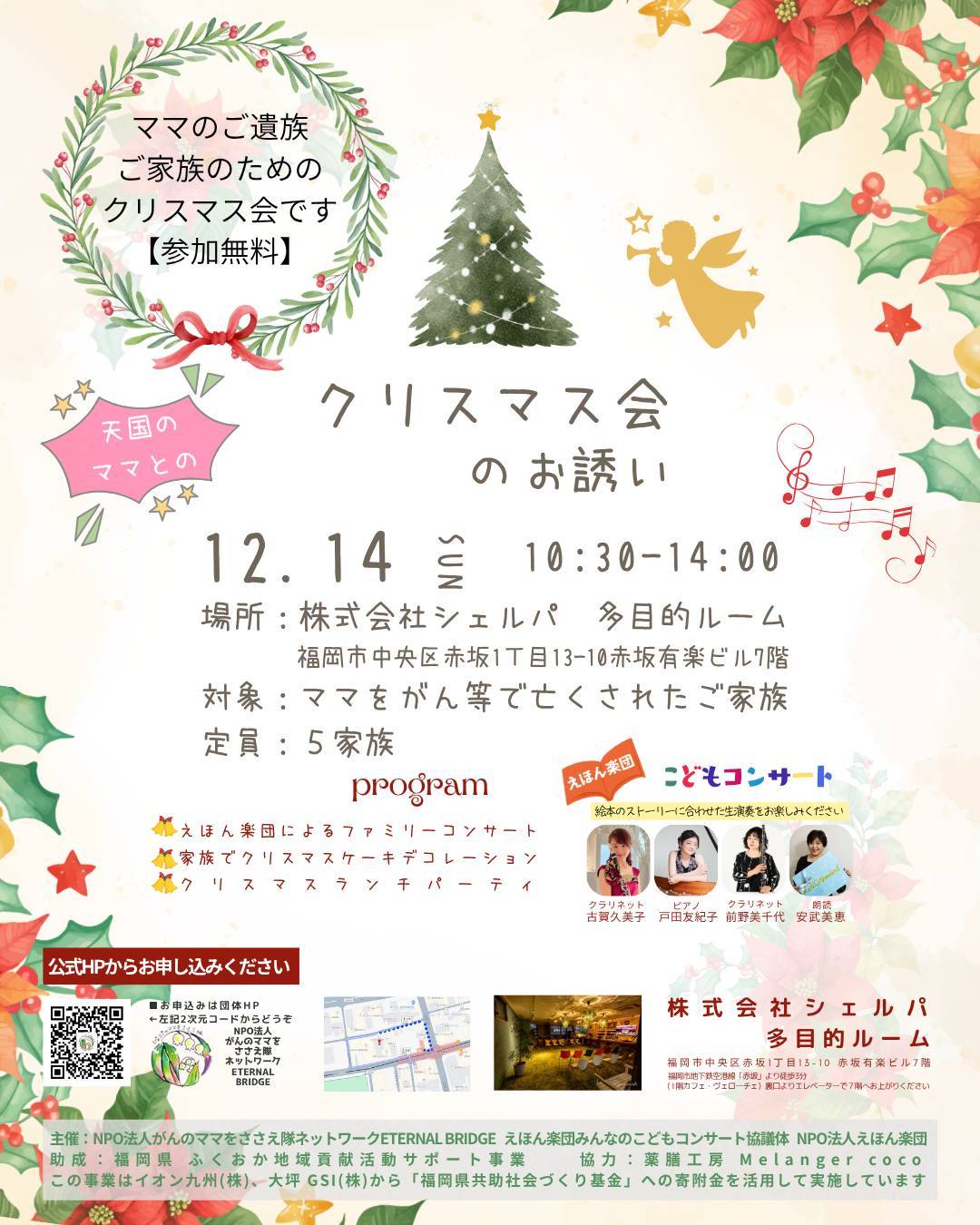 ママのご遺族、ご家族のためのクリスマス会 天国のママとのクリスマス会の誘い【2025/12/14】